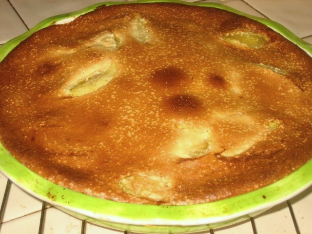 2. In medium bowl, beat eggs and sugar with mixer on high speed for 4 minutes until light yellow and fluffy. Whisk in the almond meal/flour then, pour evenly over plums. Place in oven and bake 25 minutes, or until top is dark golden brown and firm.