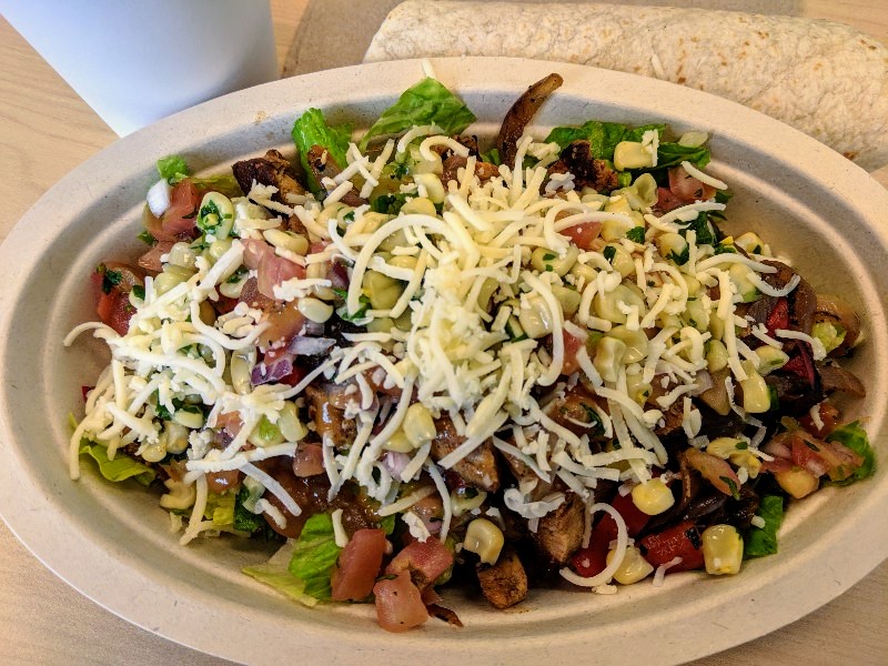 2 scrambled eggs and a Trader Joe’s hash brown patty ‘fried’ in 1 tsp oil. (5 sp).I definitely needed extra caffeine today – tall nonfat cappuccino with caramel on the top (2 sp).I was totally expecting the not exciting and  pointy Panera Sandwiches for our vendor lunch today. I was probably a bit too excited when I saw it was Chipotle and I grabbed like everything.In my bowl: