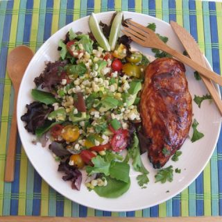 Summer of POM: POM Infused Chipotle BBQ Chicken with Fresh Corn, Tomato, Avocado Salad