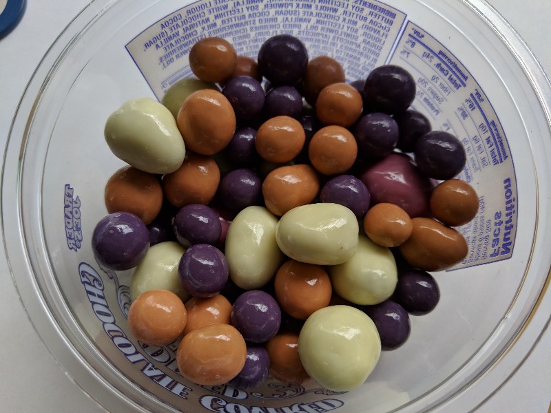 I had the Southwest BBQ Chicken salad and did not need the dressing as the BBQ sauce + toppers had so much flavor (6 sp).??After lunch, we stopped at Trader Joe’s. I cannot tell you all how many times I picked up and set down these chocolate covered dried fruit. I eyed them while in line waiting….then, finally said, ok I am buying them.I highly recommend weighing the 40 grams per serving because if you are like me you’ll pick the biggest 6 for your points.Speaking of points….omg, I wish I scanned these before I gave in….Know before you go and buy it!