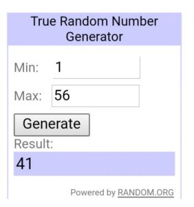 drawn using random.org is…..